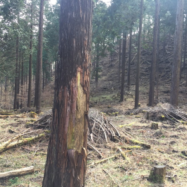 今日の山守り作業。杭打つ音が響いてたゾ。